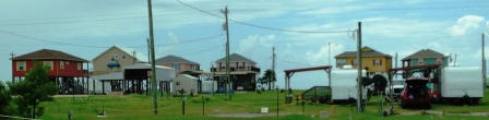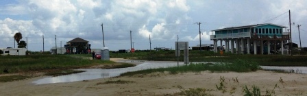 We passed locals fishing on inlets and their nearby shacks. As we neared Holly Beach (near Cameron) we saw a long stretch of beach houses on stilts and an assortment of trailers and RVs.