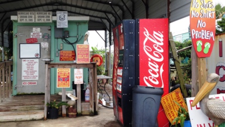 We found a "store" offering seafood, but it was deserted and crammed with more signs.