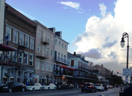 I asked for advice from a few fellow passengers on what to do and where to go in the French Quarter. When we got off the street car, one of our new found friends directed us away from Bourbon Street where we disembarked to streets leading us down towards the river. We were also advised to guard wallet and purse carefully as we walked down the streets. We walked close to the curbs and away from entrances to the buildings looking over our shoulders at suspicious looking folks. Most of the streets and buildings seemed filthy and crowded with tourists mingling with the locals who loitered around suspiciously. At the end of one street we saw a restaurant advertising the best gumbo in town. We decided to sit outside where we could people-watch and sample the seafood gumbo along with a beer.