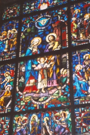 As the sunlight weakened and the colors became muted we headed south to Concord, NH, to visit a Carmelite Monastery. We were greeted by Barbara, the receptionist, who offered us some coffee and directions to see the grounds and the unique stained glass windows in the monastery's chapel.