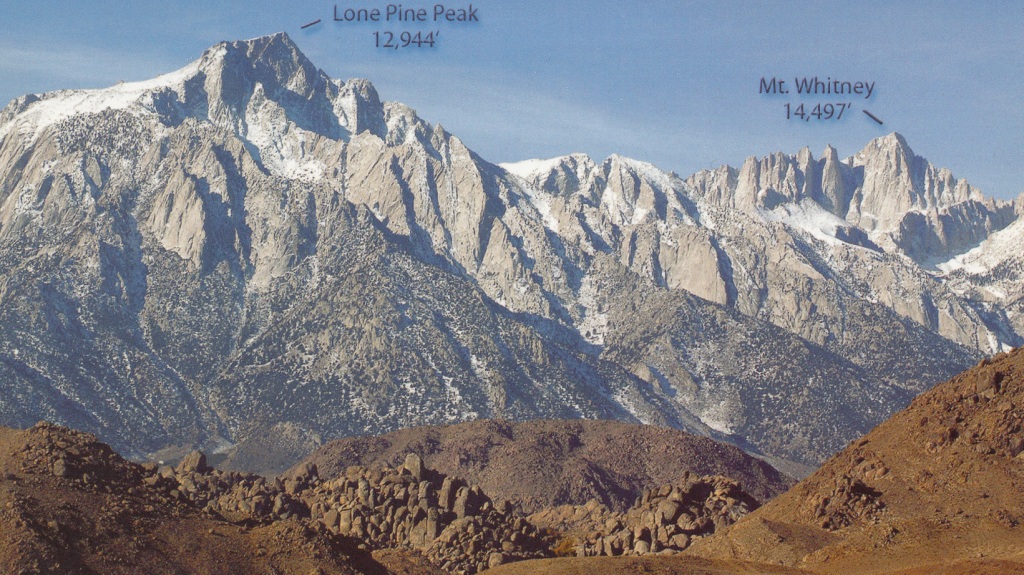 A few hours later we arrived in Bishop for the night before our next adventure: Mount Whitney. The following morning, the sun lit up Mount Whitney and the surrounding peaks. Driving up and down the steep road to the trailhead for Mount Whitney, we could see Lone Tree Peak and Mount Whitney on the way up; then, Lone Pine Canyon, Lone Pine Lake, the Owens Valley, and the Inyo Mountains on the way down.