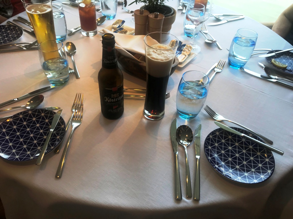 Soon we were back on the bus to our ship. Lunch was served. I took pictures of the local beer and all the silverware set at each meal: