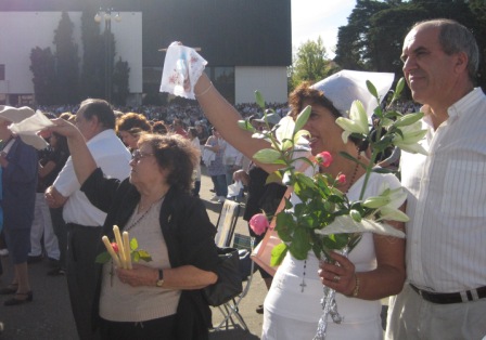 I took a few more pictures of her as she received what appeared to be her first communion and a final picture of her waving her handkerchief in the traditional parting gesture with 100 thousand others to the statue of Our Lady of Fatima leaving the square after Mass. I could only think to myself how much they love this Lady.