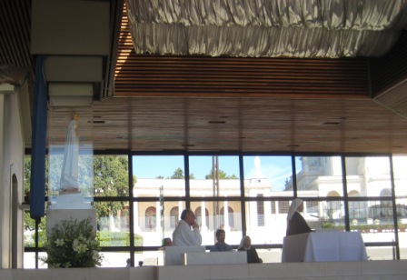 Our final stops were the chapels surrounding the church. I visited the adoration chapel while Barbara went to confession to Fr. Frank who had heard my confession the night before. Then I crossed the square for a short visit to the Chapel of the Apparitions where a group of children from Poland were saying the rosary. It was wonderful hearing the children saying the rosary and seeing them so close to the statue of our Lady of Fatima.
