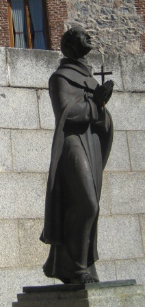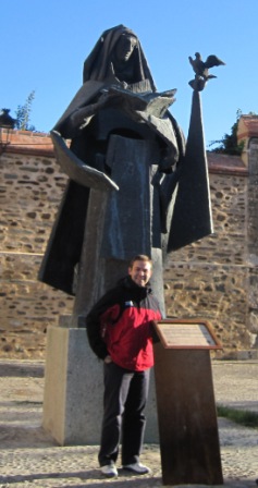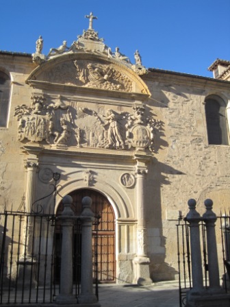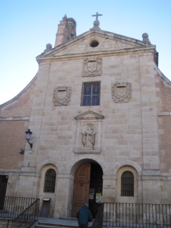 We arrived at Alba de Tormes by 10:15. Javier explained a few things about the Carmelites as we shivered in the cold. Then we entered a square where we took pictures of the Church of St. John of the Cross (left) and the Church of the Annunciation (right).