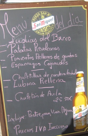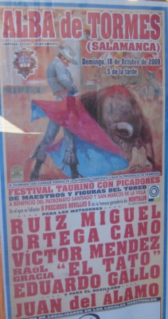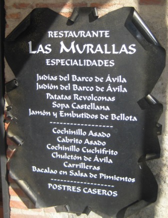 As we left Avila, we could sense St. Teresa’s spirit of dealing with the sublime and everyday matters so well. At Alba de Tormes we had seen posters for bull fights. Now we saw signs for Avilan lunches, one with a picture of La Santa at the bottom.
