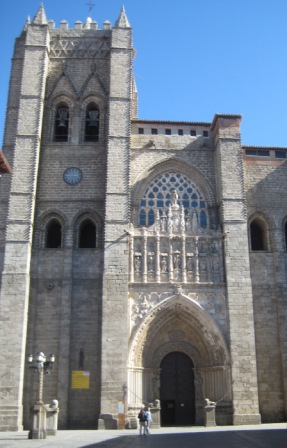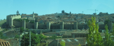 By 12:30 we were off to Avila. The rolling hills toward Avila were stripped of trees for growing corn and grain. The two lane road was very smooth, a vast difference from St. Teresa’s time. Coming down a steep grade we could see the walls of Avila with the medieval buildings catching the rays of the afternoon sun.