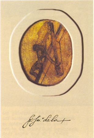 Original drawing signed by St. John of the Cross; courtyard with circles; statue of St. John of the Cross