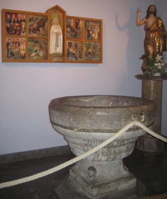After Mass we boarded the bus for a short ride to the parish church of Lourdes to see the fount where Bernadette was baptized…