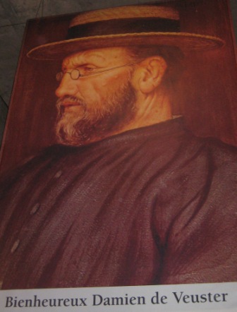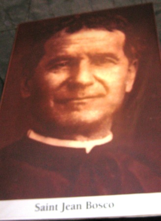 Our next stop was a quick visit to the vast underground Pius X Church built in the late 1950s to hold crowds up to 20,000 and to shelter the sick from the rain. Barbara and I explored the banners surrounding the church and I took a picture of one of my favorite saints, St. John Bosco.
