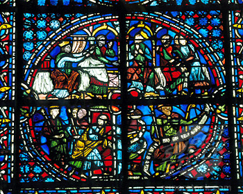 We enjoyed spectacular, spring-like weather driving northeast to Rouen, the site of the famous cathedral which Monet painted many times to catch the difference in light. First we toured the Church of St. Jeanne d’Arc. Ultra modern outside with medieval stained glass windows inside—it was like mixing chocolate with vinegar.