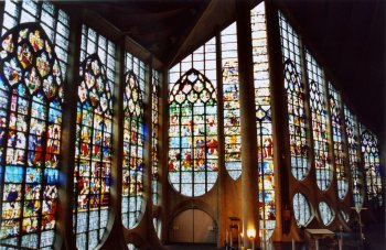 Our guide told us how it had survived the Normandy invasion bombing of World War II which destroyed 80 percent of the city. She also explained the meaning of the modern mosaics which decorated the dome and walls.