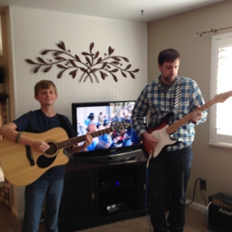 We sat around the pool while Joe showed Carson some tricks on the guitar...