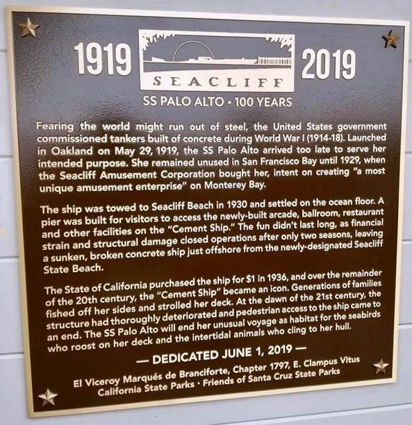 The S.S. Palo Alto went from an oil tanker, to an entertainment ship, to a fishing pier, and will now live out the rest of her days as an artificial reef and a symbol of Aptos History (2019):