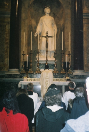 Day Three: I was especially moved by the sight of the sculpture of St. Cecilia with her head contorted by the blows of the sword; this was a time for prayer so near her place of martyrdom.