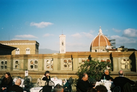 Lunch on the terrace of the Uffizi near the Palazzo Vecchio with the Duomo in the background.