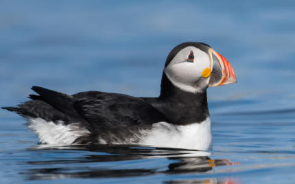 lonely puffin lower left; and internet closeup