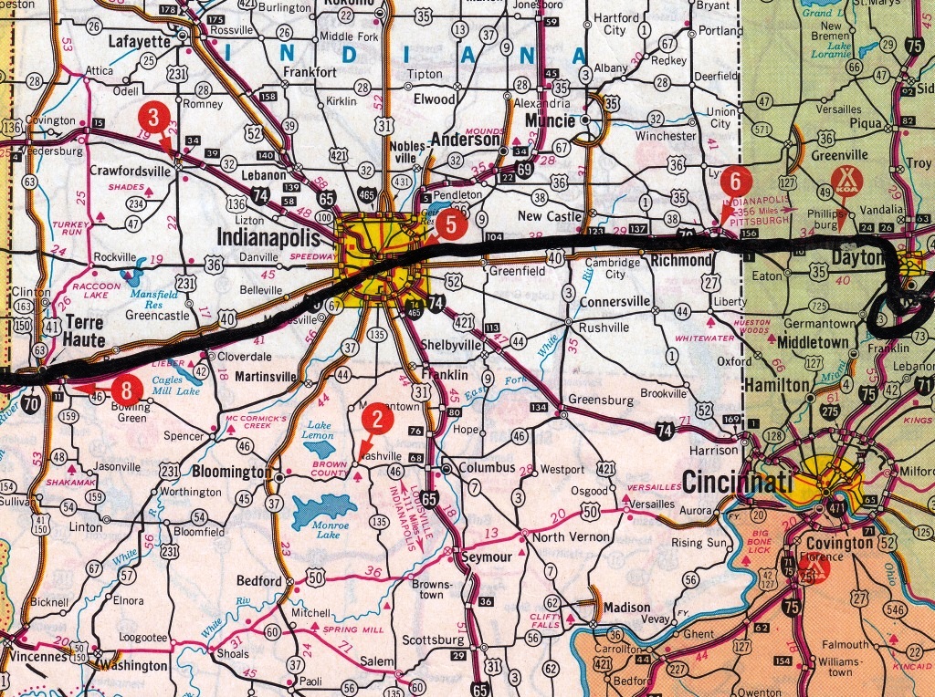 Friday was a marathon drive from St. Louis, across the Mississippi, into Illinois, then into Indiana. The countryside was full of cornfields and a few major cities. We passed through Effingham, Illinois on the way to Indianapolis, Indiana, before arriving in Dayton, Ohio and the Olive Branch Campground in Oregonia. By then, we were ready for some rest from all the traveling and were looking forward to spending a few nights in one place near one of our major destinations, Gettysburg.