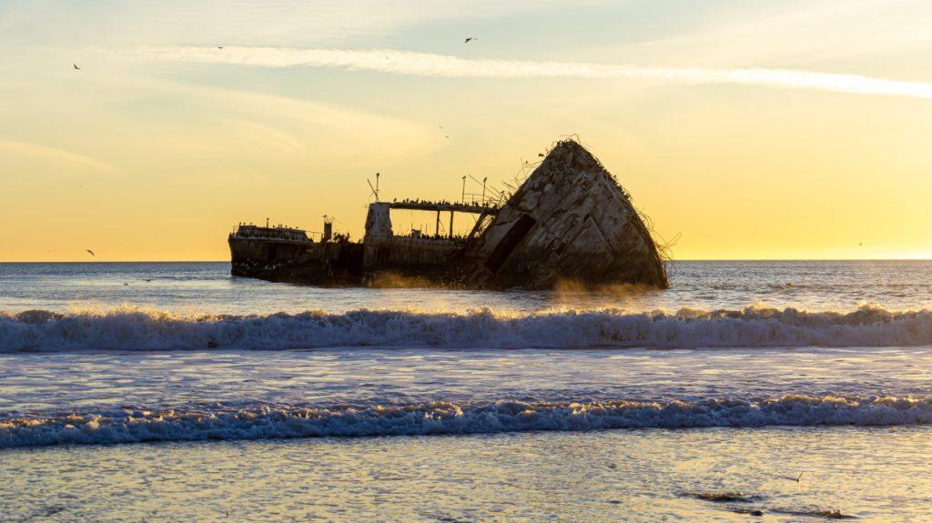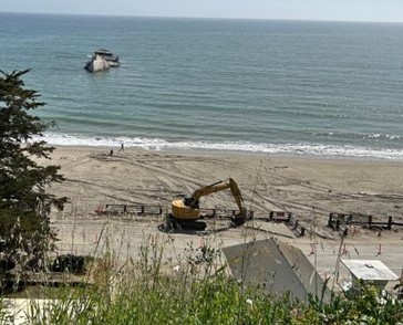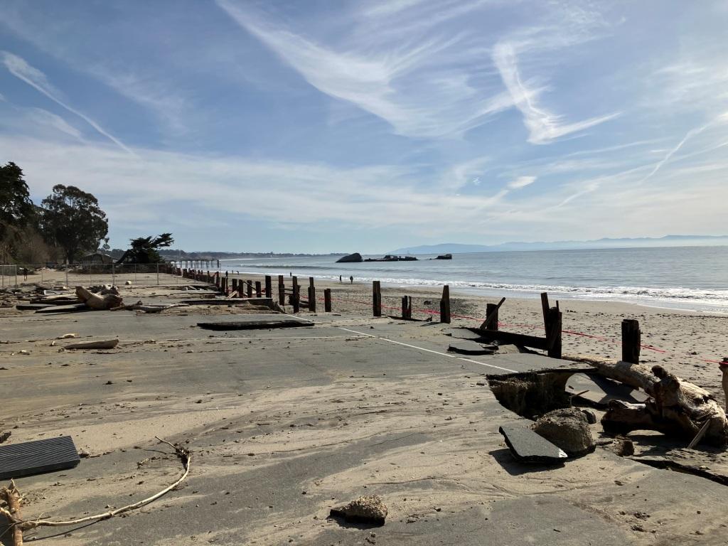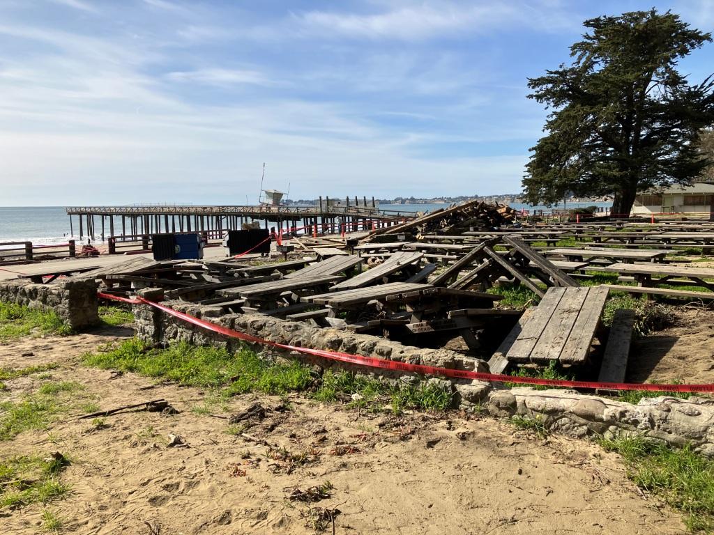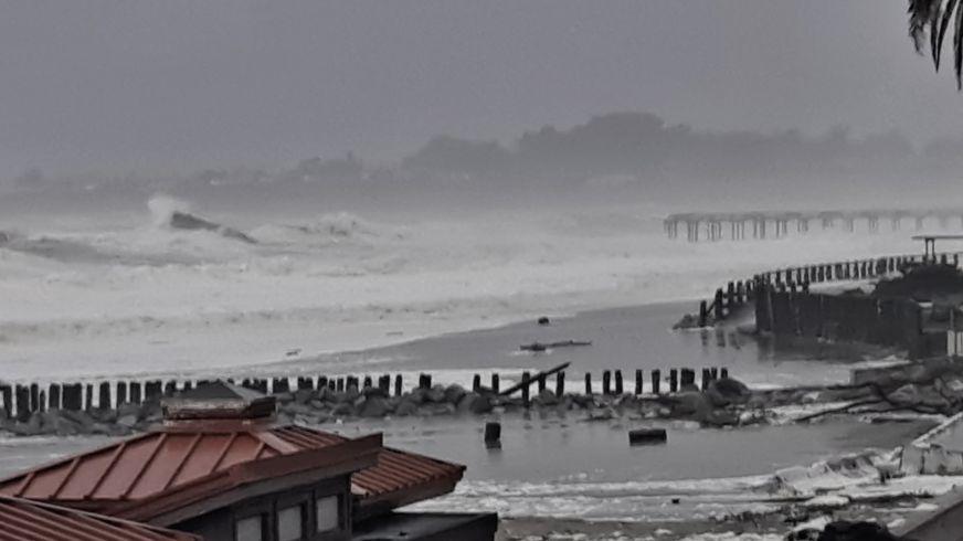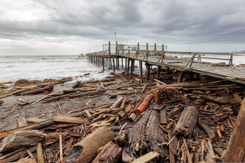 January 5, 2023: The iconic cement ship broke away from the pier. Huge 25-35 foot waves wrecked the pier, the access road, the RV parking area, and retaining walls: