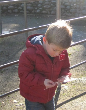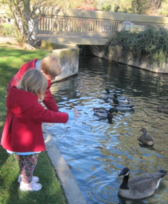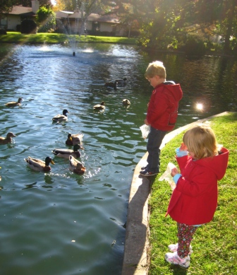 The Acevedo Clan arrived first and had time to feed the ducks and check out the frozen puddles before everyone else arrived: