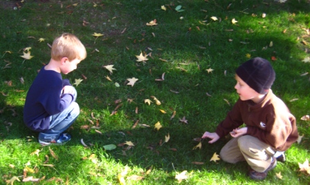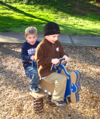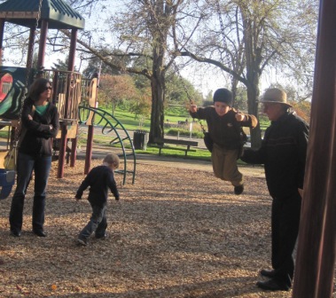 Before dinner Austin and Carson played in the park and dug dinosaur bones: