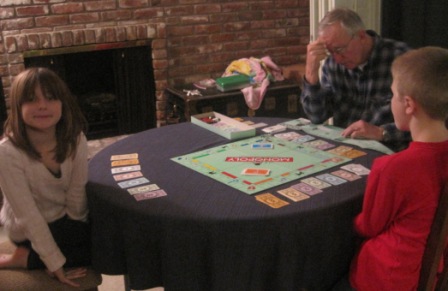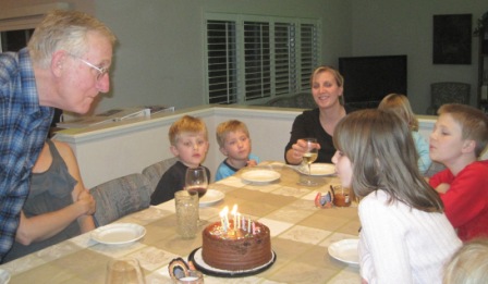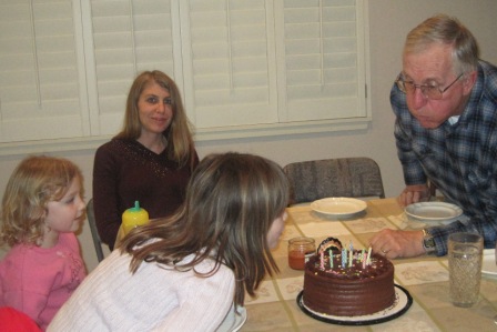 After dinner, Grandpa Jim and Helena blew out birthday cake candles together: