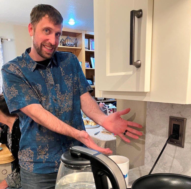 We gathered in Yuba City at Maggie and Jason's newly remodeled kitchen where Joe had just finished installing outlet plates...