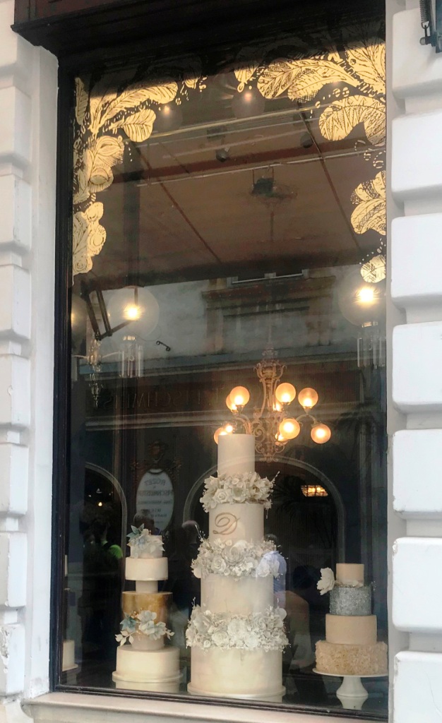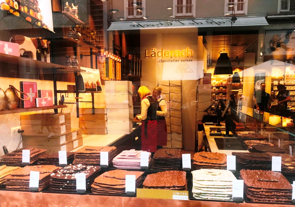It was a short walk from God to mammon as we passed jewelry and fashion stores, chocolate shops and bakeries: