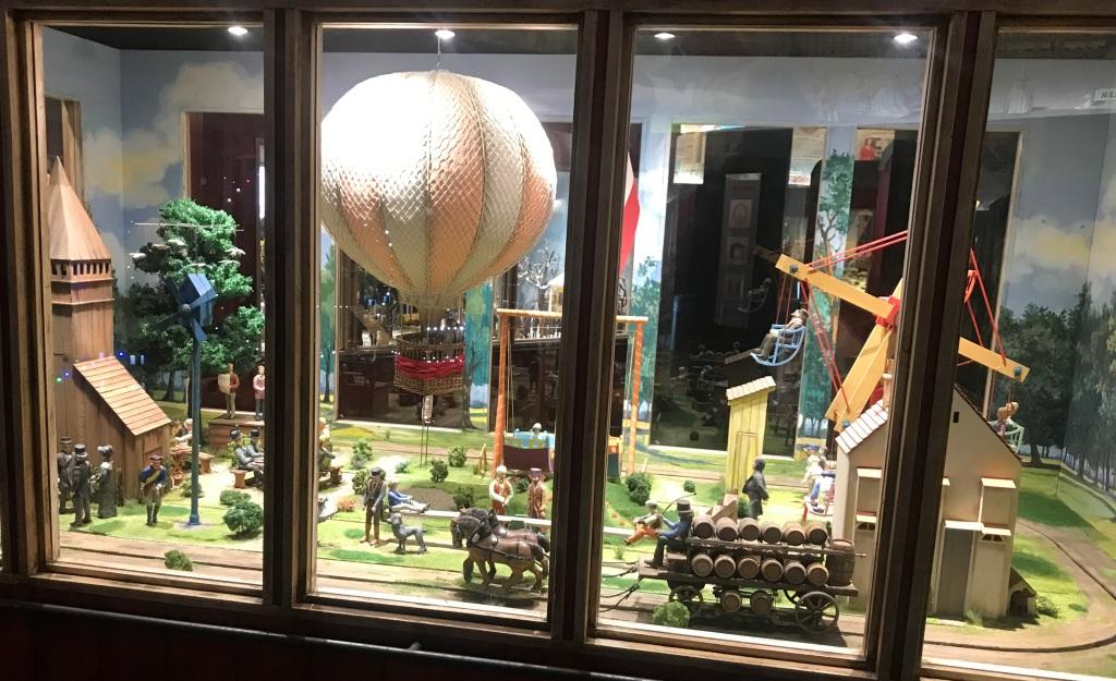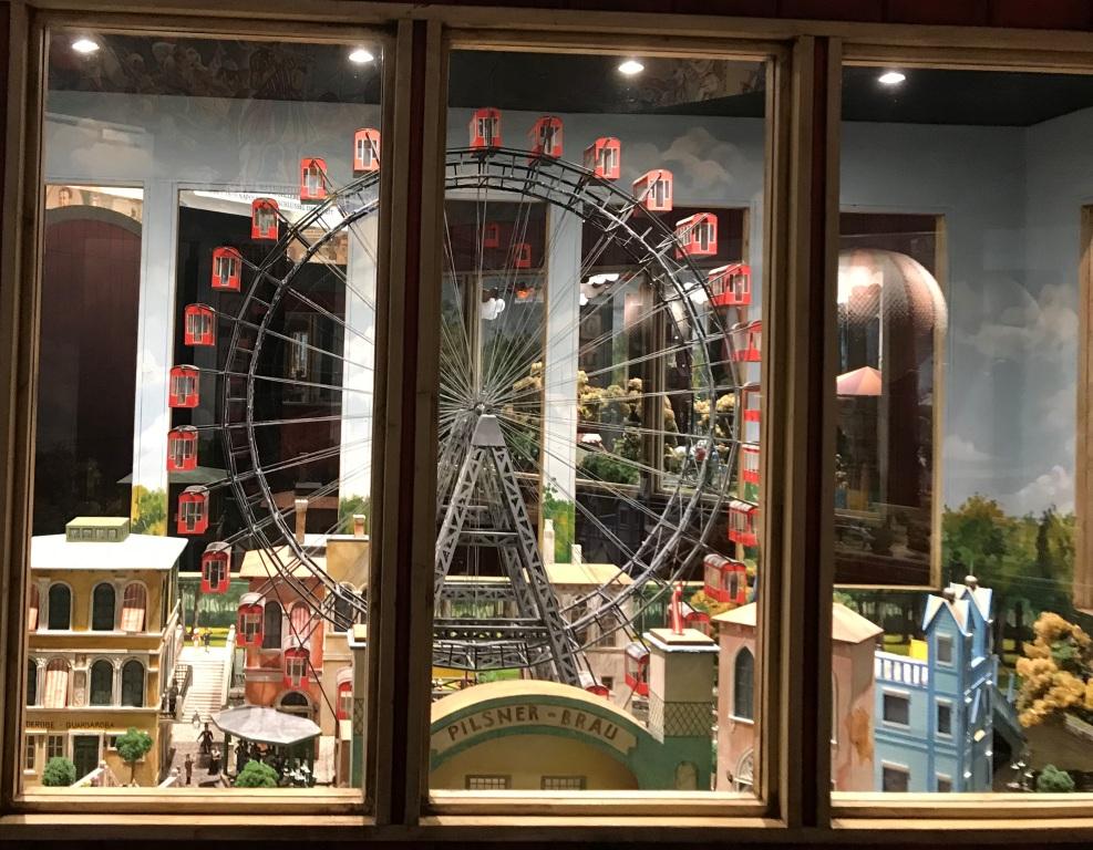 Picking a random stop, we hopped off and headed upstairs. As soon as we hit daylight, we could see the famous Vienna Ferris Wheel. We had seen it when we watched "The Third Man" movie, so we headed that way. It was a short walk through a park. We followed tourists toward the attraction and took pictures of some dioramas an the way to the ticket booth: