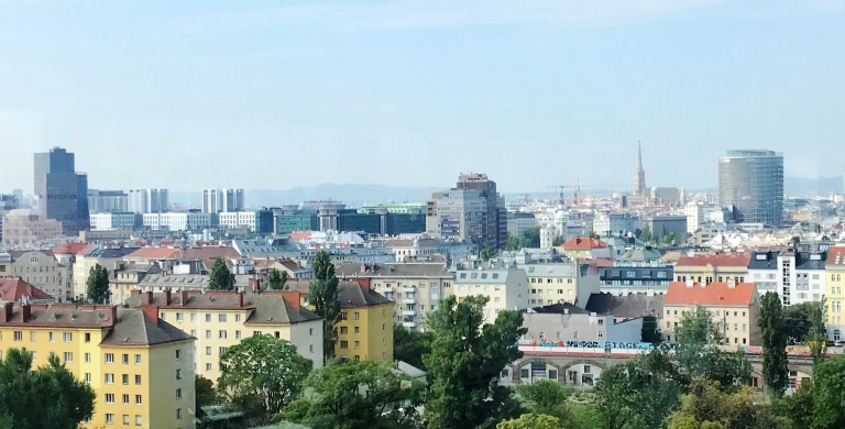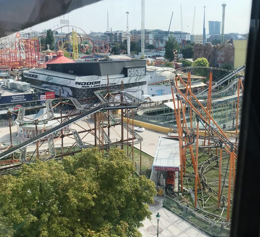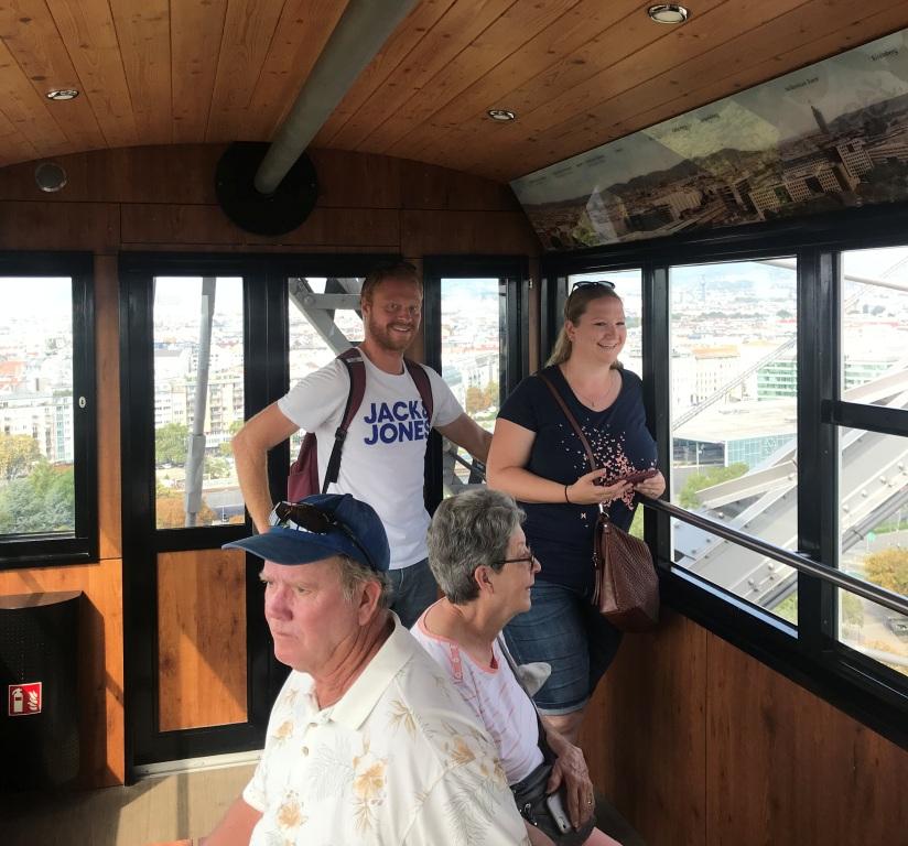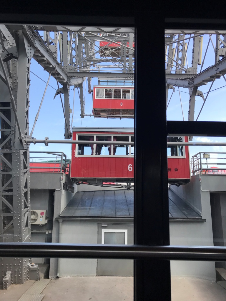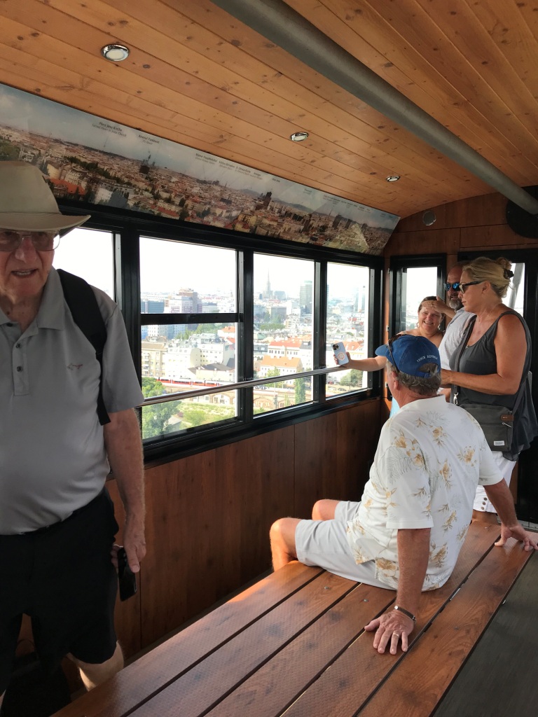 As our car reached up higher, we looked at other cars, the amusement park below, and the city of Vienna: