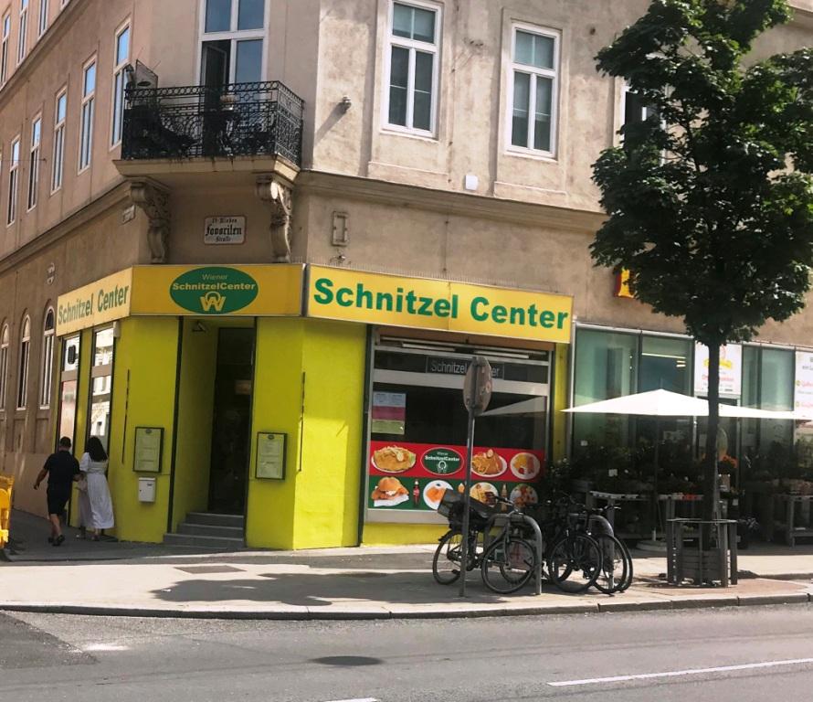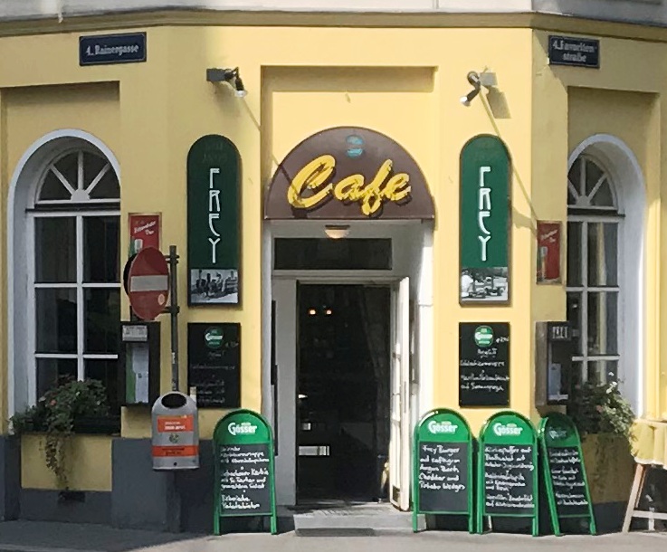 Back on the ground, we retraced our steps to the subway to find a place for lunch. Not wanting to be in the center of Vienna, we waited for several stops before getting off. It was amazing how many buildings stretched far away from the town center. After taking a picture of a street sign to remember the way back to the subway, we spotted a neighborhood cafe: