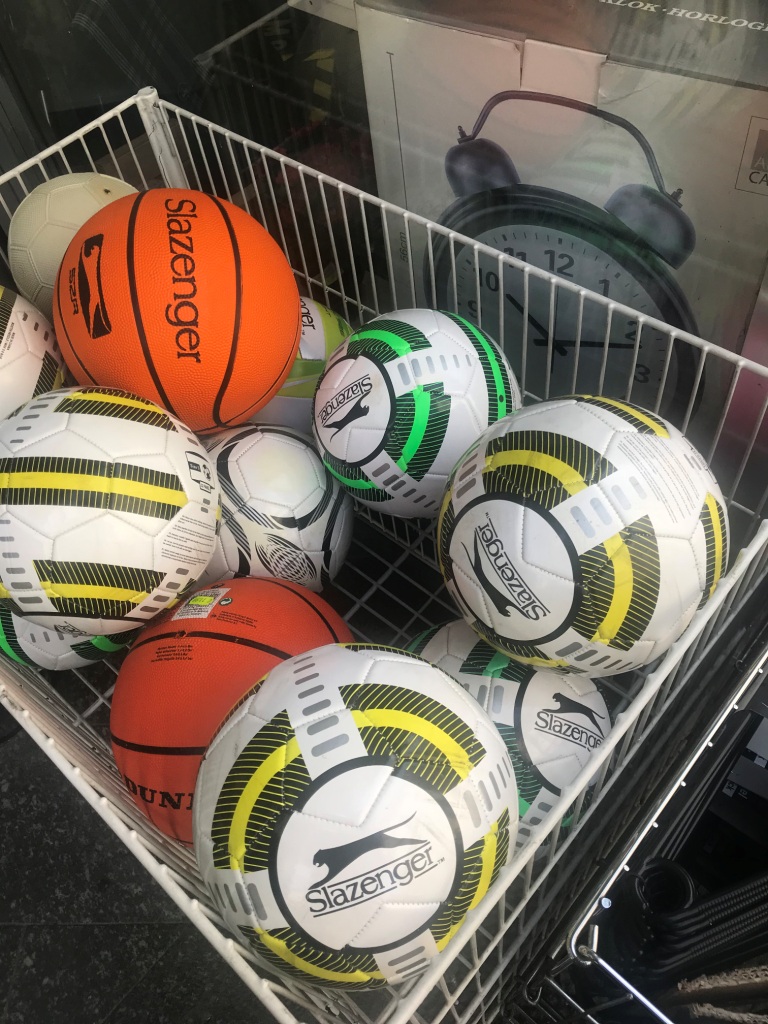 Peter had visited California (L.A. and San Francisco) and was anxious to return. We used the restroom then tried to remember our way back to the subway. I was taking a picture of another restaurant and some soccer balls when I heard someone shouting: