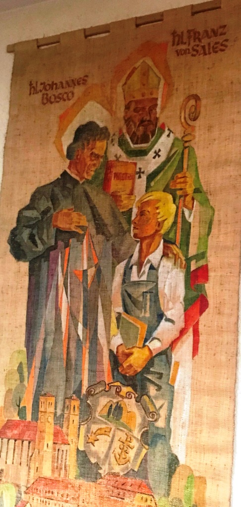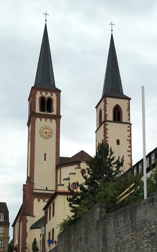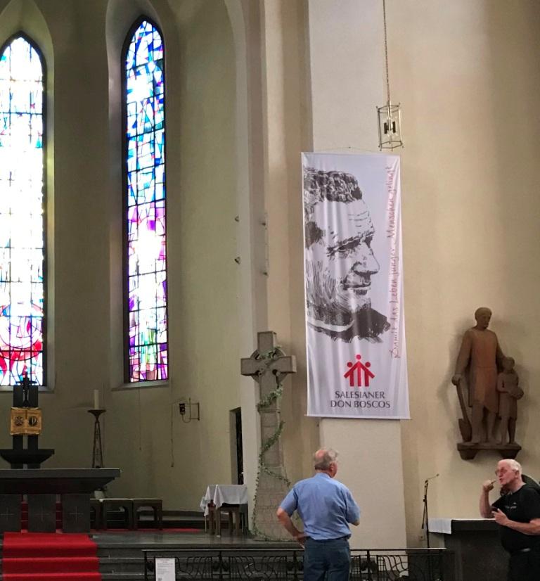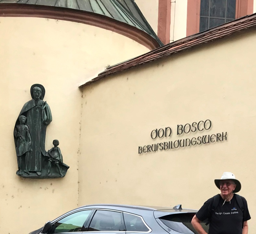 By the time we had docked, we had decided, along with Bill, Lana, Bev, and Judy, to skip the tour because of the long walk. Instead, Barbara and I planned our own tour while the others went shopping in the town center. Barbara spotted St. John Bosco Church across the river northwest of the bridge, Alte Mainbrucke. We took pictures of most anything that mentioned Don Bosco or Salesians: