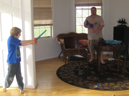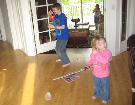 Soon a house-wide battle started with more Nerf guns, water pistols, and swords.
