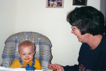 Back inside, Shane and Jeff entertained Wyatt; then, Grandma Barbara served him dinner.